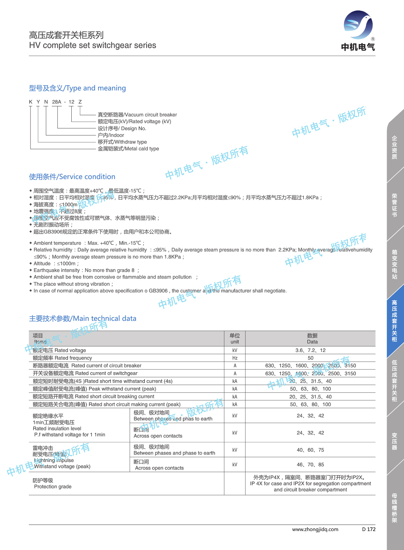 簡要描述:KYN28A-12鎧裝移開式交流金屬封閉開關(guān)設(shè)備,于三相交流50HZ、12kV電力系統(tǒng),主要應(yīng)用于發(fā)電廠、變電所及工礦企業(yè)、鐵路運輸、高層建筑的變配中作為接受和分配電能之用。...