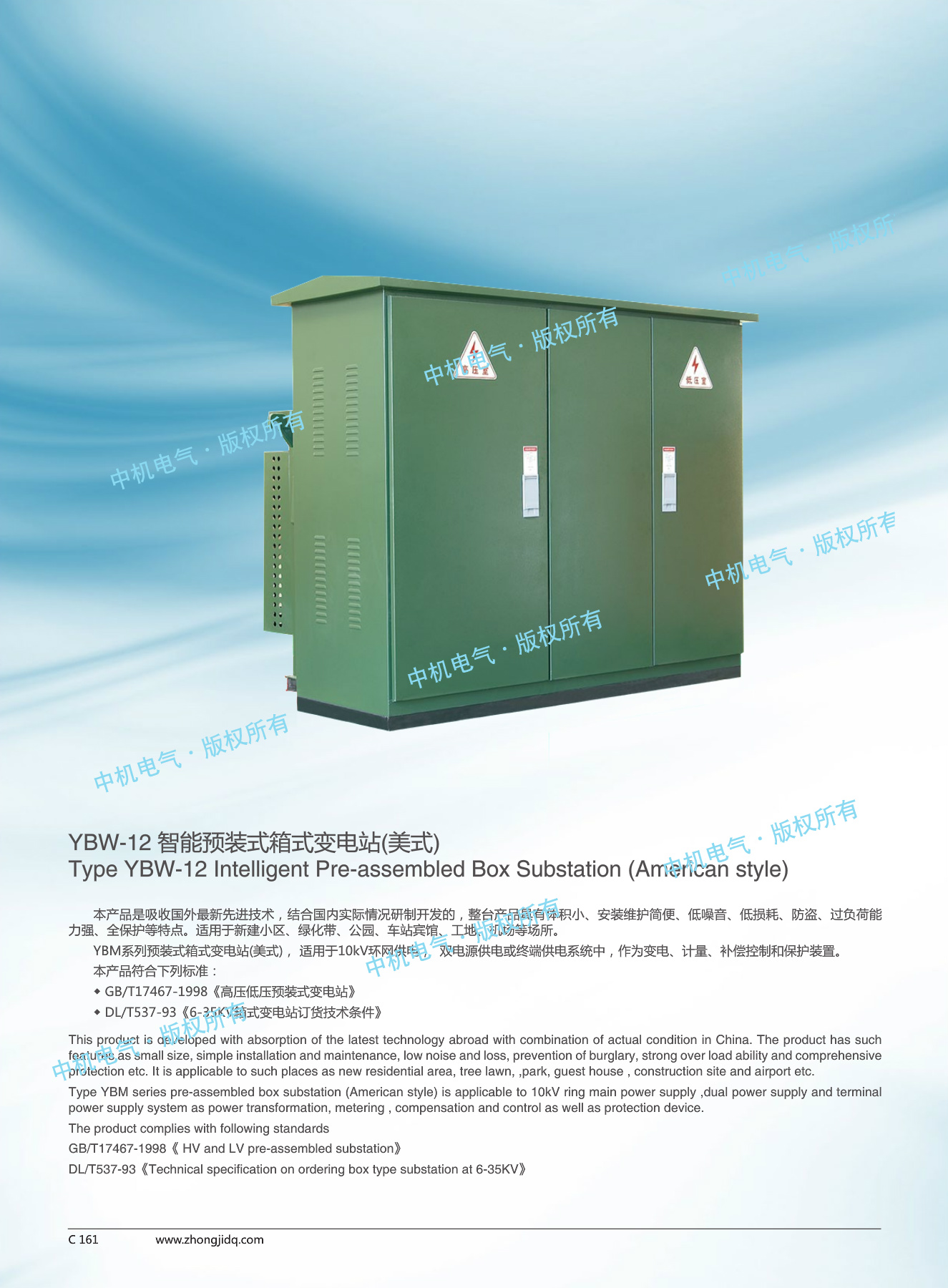簡要描述:YBW-12系列預(yù)裝式變電站,是將高壓電器設(shè)備、變壓器、低壓電器設(shè)備等組合成緊湊型成套配電裝置,箱體材料采用槽鋼、鋁合金與阻燃型復(fù)合材料制作而成。...