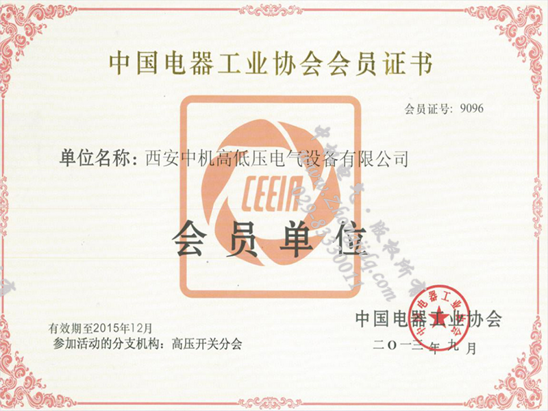 中國電器工業(yè)協(xié)會會員榮譽(yù)證書